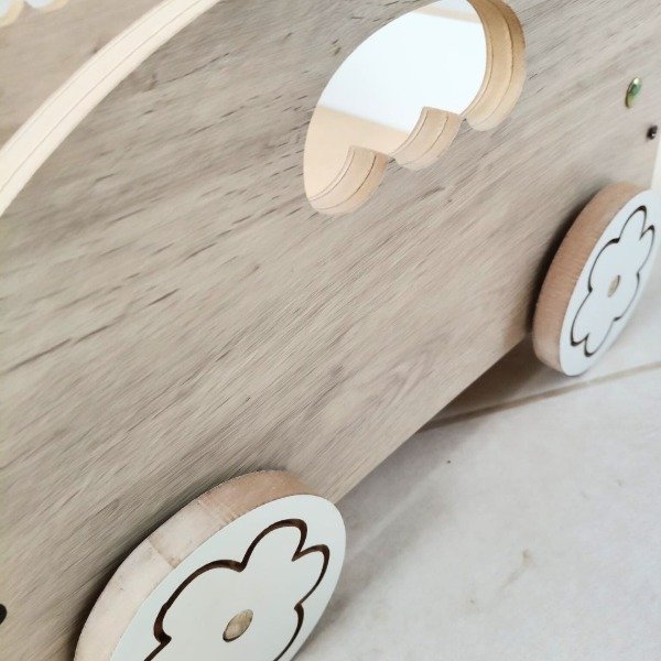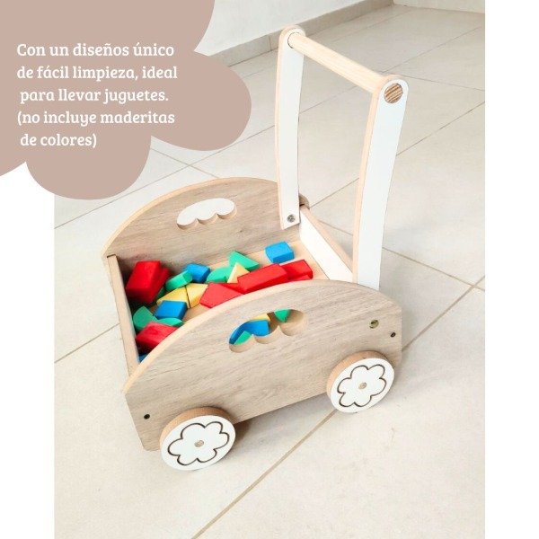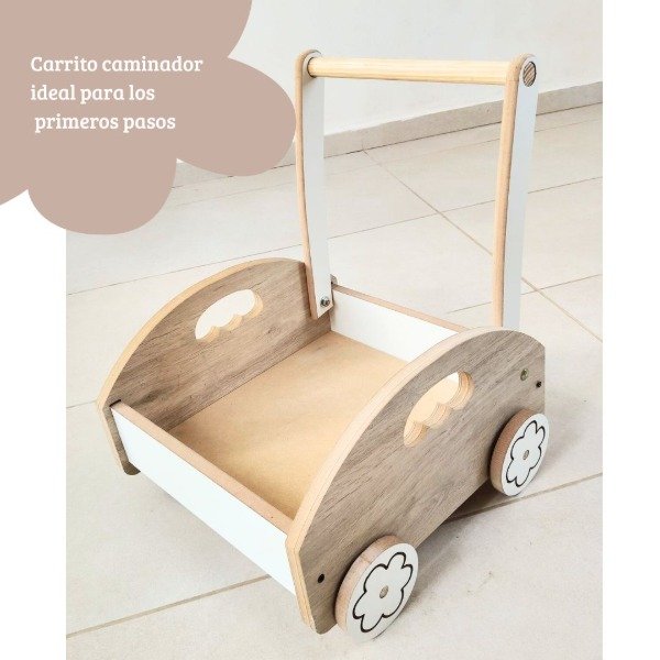 Este carrito caminador está diseñado para acompañar los primeros pasos de los más pequeños, brindando estabilidad, seguridad y un toque de diversión. Fabricado artesanalmente en MDF con melamina de 15 mm, combina la calidez de la terminación color cajú con la frescura de la melamina blanca, creando un diseño único y atractivo.