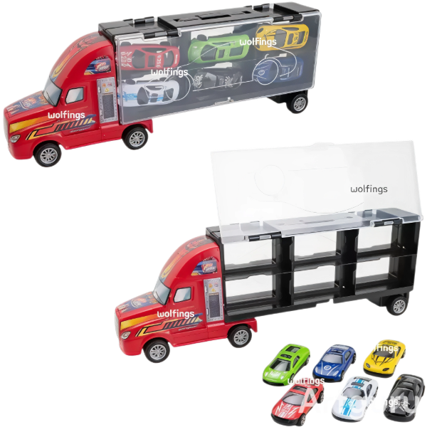 Este camión rojo no es solo un juguete, es una valija que almacena y organiza hasta 12 autos, ¡perfecto para mantener el orden y llevarlos a todas partes!
