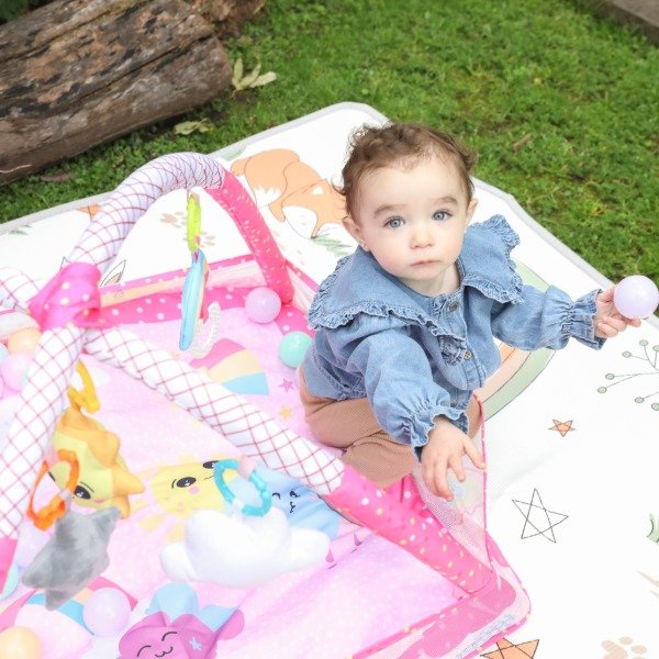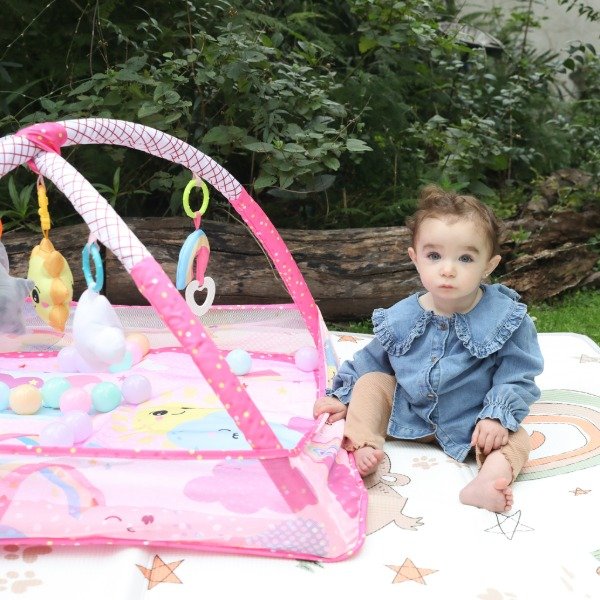 Incluye 18 pelotitas de colores + 5 juguetes colgantes.