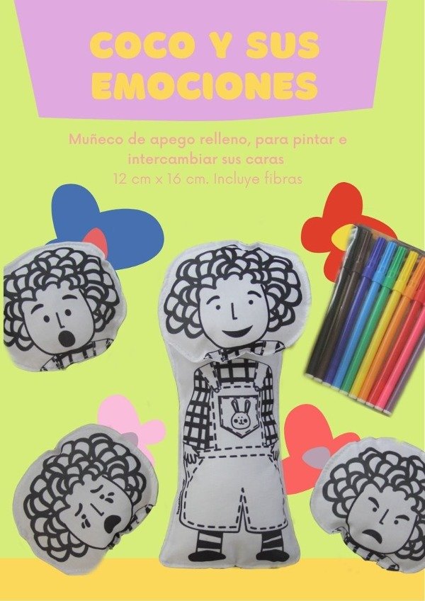 Muñeco de las emociones reutilizable para pintar con fibras y volver a lavar.