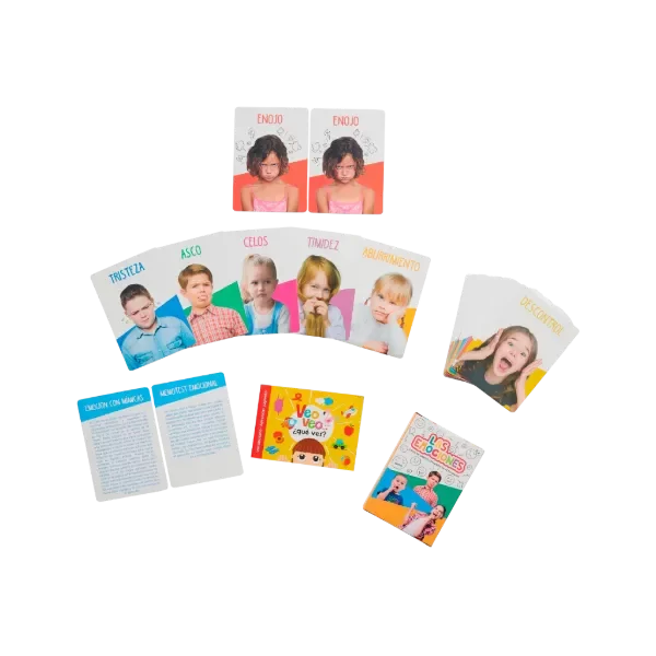 • 50 cartas con todas las emociones para jugar y divertirse mientras se aprende a reconocer y expresar cada emoción que experimentamos.