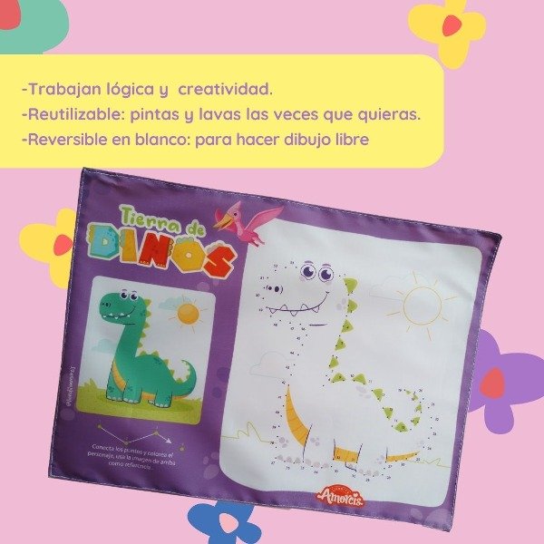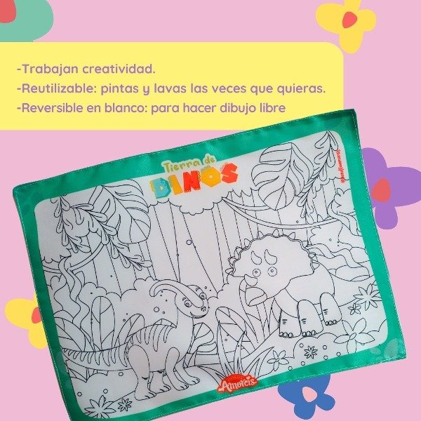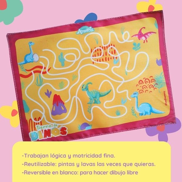 Estos individuales en su dorso doble contienen lona blanca para así permitir que los pequeños puedan trabajar la imaginación y realizar dibujo libre.