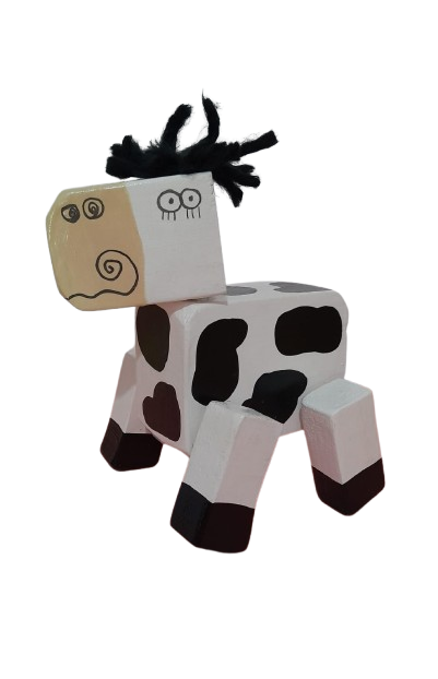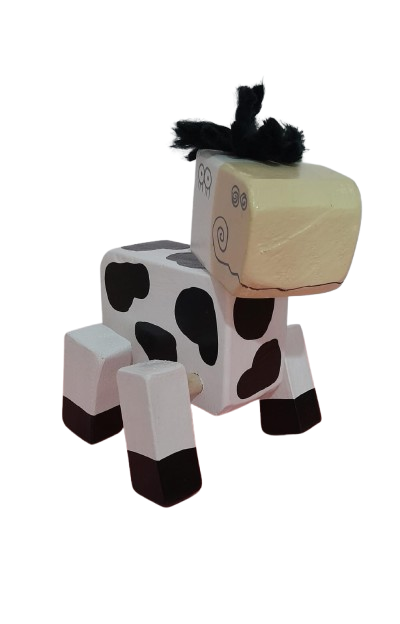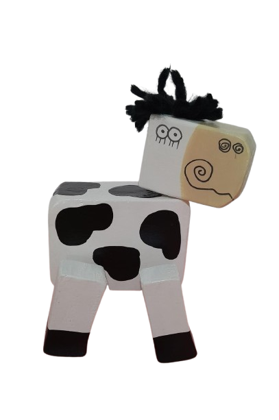 Vaca de madera artesanal, pintada a mano con detalles encantadores.
