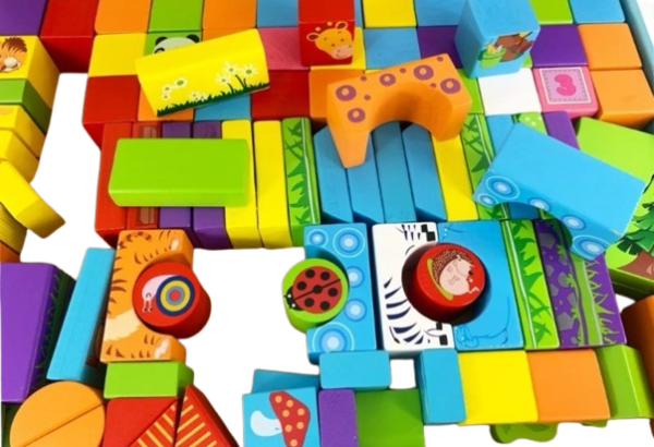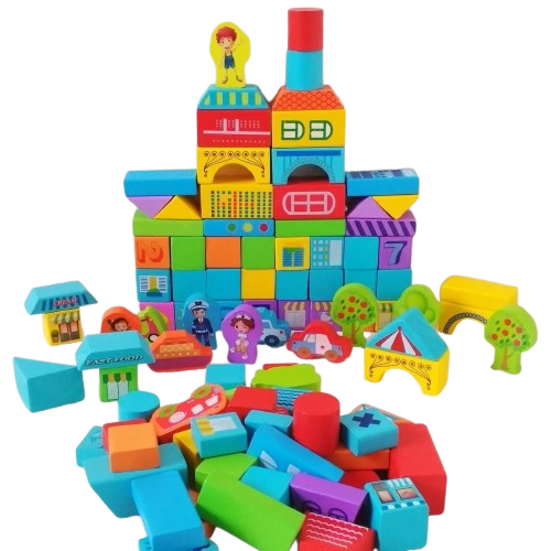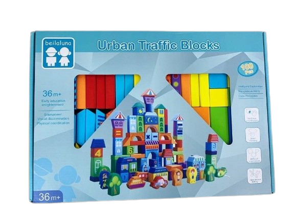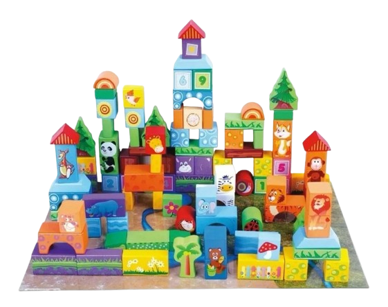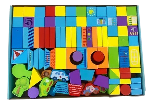 Este juego proporciona todo lo que su pequeño necesita para embarcarse en su viaje creativo de construcción con 100 bloques de madera con colores y formas de alta calidad.