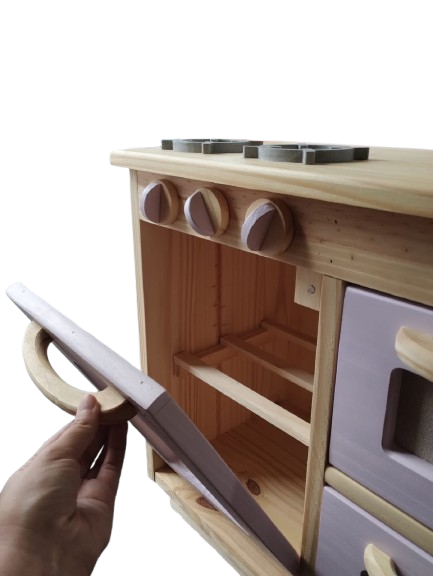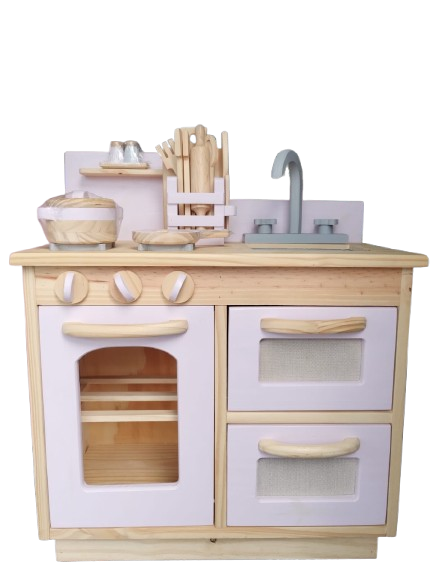 Fabricada en madera resistente y con un diseño adorable en tonos suaves, esta cocinita no solo es un juguete divertido, sino también una hermosa pieza que complementará cualquier espacio de juego. ¡Prepárense para recibir los pedidos más deliciosos de los pequeños chefs de la casa!