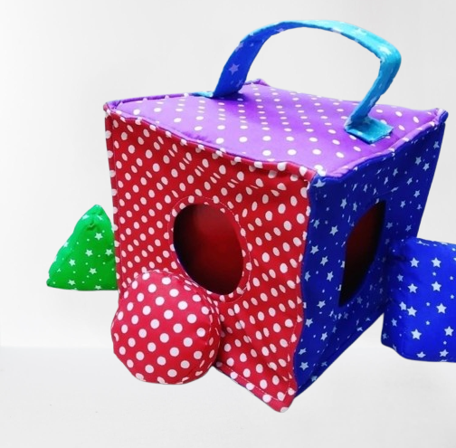 Estás viendo nuestro juego CUBO ENCASTRE, especialmente creado para los más chicos, ya que su encastre al ser blando permite que cualquier pieza entre en cualquier orificio. Además trabajan las formas y colores.