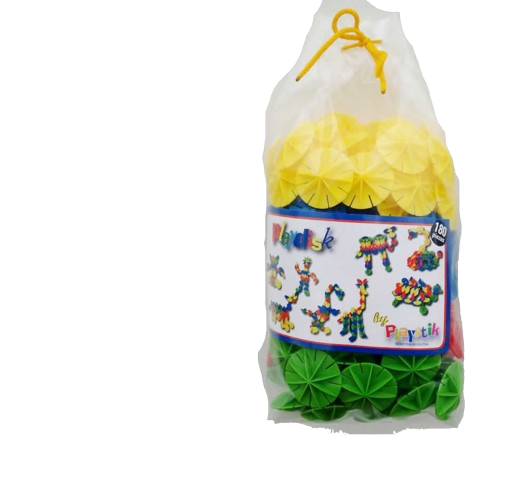 Presentación: bolsa con 120 piezas de diferentes colores (rojo, amarillo, azul y verde)