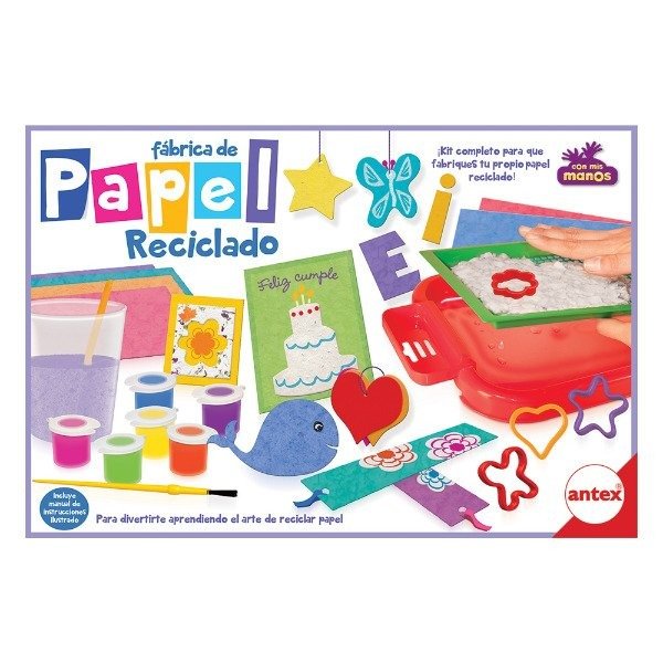 Contiene 1 bandeja, 1 bandeja con malla, 1 vaso mezclador, 1 cuchara, 1 pincel, 6 pinturas y 4 moldes y manual de instrucciones ilustrado.