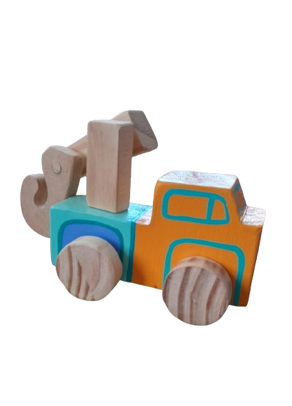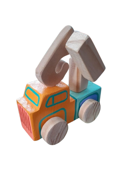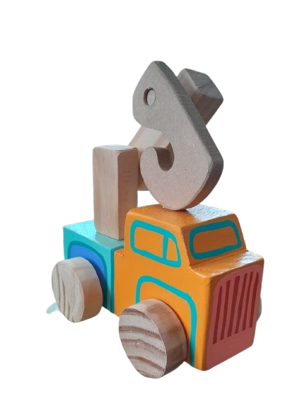 La grúa cuenta con un enganche móvil y ruedas que giran, permitiendo a los niños explorar y desarrollar su imaginación mientras juegan.