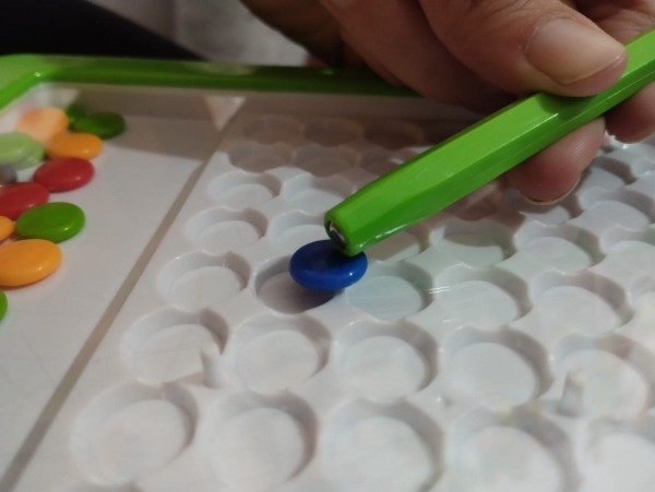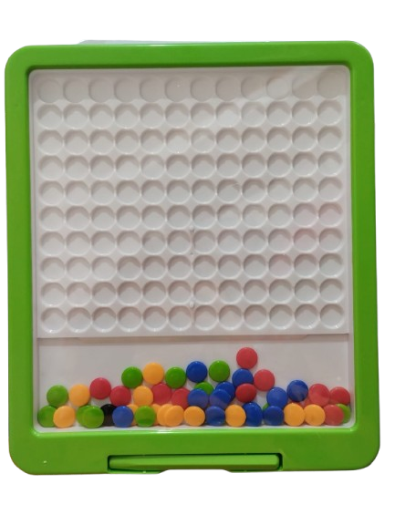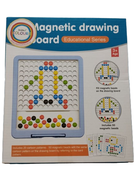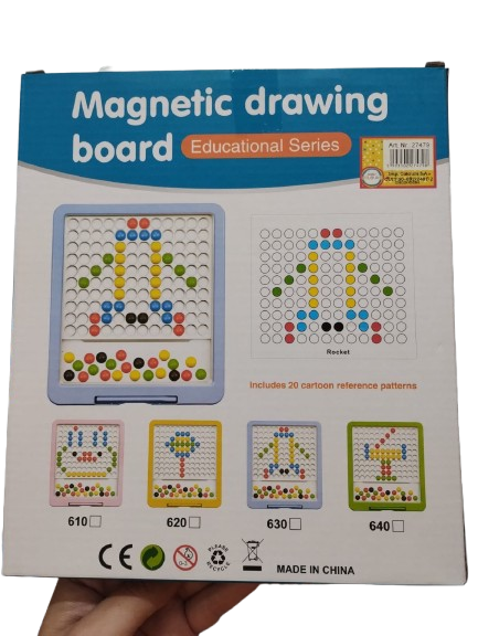Esta pizarra magnética para dibujar es una herramienta de dibujo interesante en la que los niños pueden crear sus propios diseños únicos tirando de las cuentas hacia la superficie con un clic audible con el bolígrafo magnético. Cada cuenta está en su propio bolsillo y no se cae. Para borrar la pizarra, simplemente levante el tablero o pase el bolígrafo por las bolas magnéticas. Maravilloso juguete de aprendizaje para practicar letras, formas, números y diseños simples, o simplemente para hacer garabatos. Tamaño portátil, conveniente para llevar de viaje.