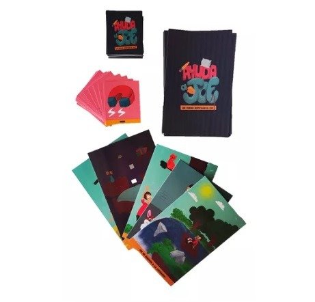 Componentes del juego: 1 Instructivo, 21 Tarjetas de situaciones, 65 Tarjetas de herramientas