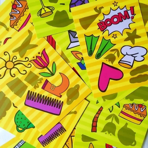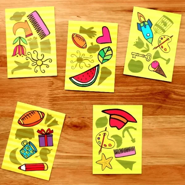 Se reparte el mazo entre todos los jugadores y se coloca una carta en el medio para comenzar, luego todos al mismo tiempo dan vuelta una carta de su mazo hasta que algún participante encuentre la coincidencia de las imágenes o sombras.
