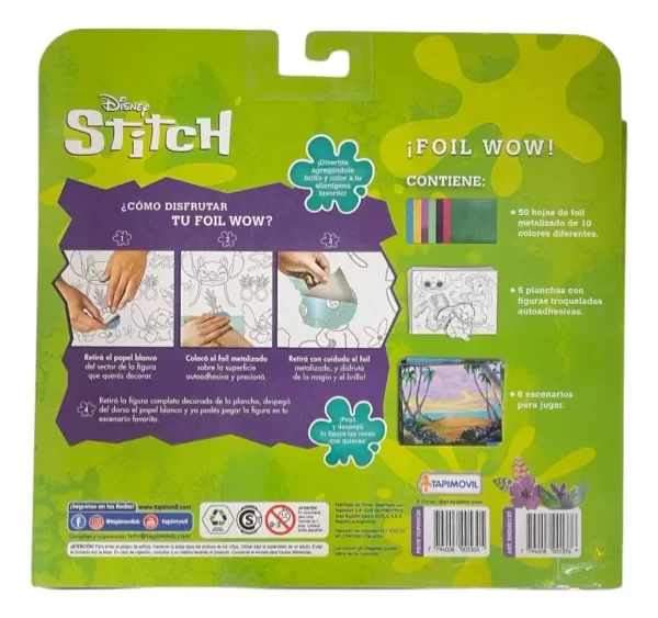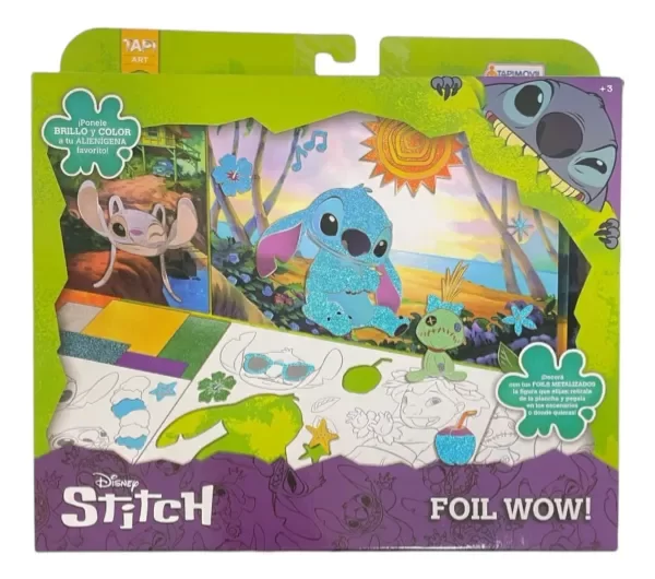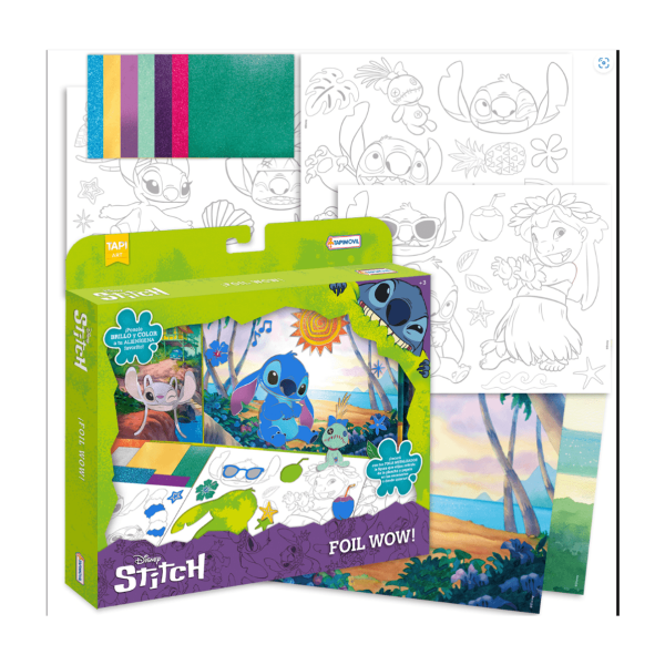 Con este increíble set Foil Wow! de Stitch , tus pequeños artistas podrán crear obras de arte brillantes con su personaje favorito. Simplemente despega las partes adhesivas y aplica los papeles foil de colores para dar un efecto metálico espectacular a Stitch y sus aventuras. ¡Incluye imágenes preimpresas y láminas foil de diversos tonos para que la creatividad vuele!