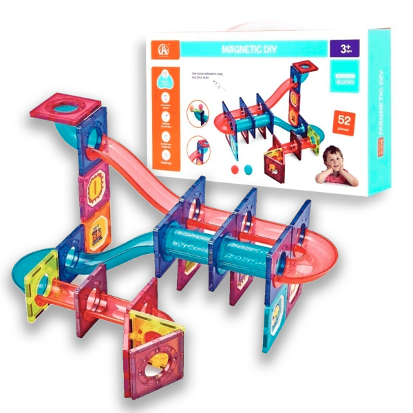 Este set de Laberinto de Bolitas de Magnetic cuenta con 52 piezas de figuras magnéticas diseñadas para estimular el pensamiento constructivo, espacial y abstracto. Todas las piezas son compatibles entre sí, lo que permite crear combinaciones infinitas y fomenta la creatividad. Además, ayuda a ejercitar la habilidad manual mientras los niños experimentan la fuerza del magnetismo y construyen libremente.