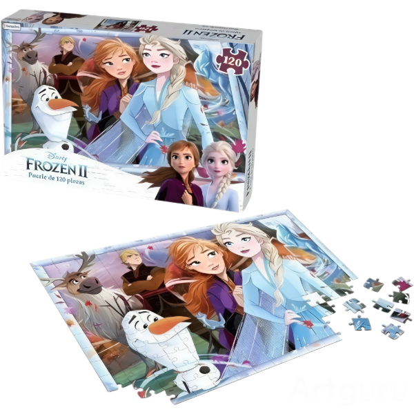 ¡Vive una nueva aventura en Arendelle! Este rompecabezas de Frozen II de 120 piezas te invita a unirte a Elsa, Anna, Olaf, Kristoff y Sven en su emocionante viaje.