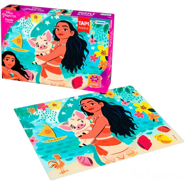 ¡Emprende una aventura en el mar con Moana! Este rompecabezas de 120 piezas es perfecto para que los más pequeños de la casa se diviertan armando a su princesa favorita.