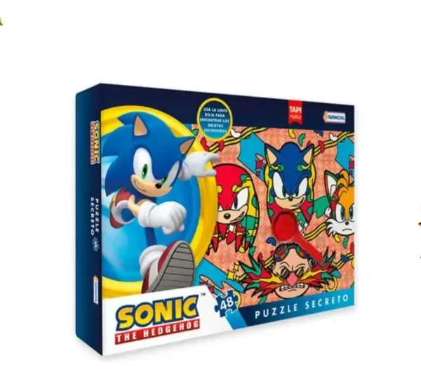 Este increíble puzzle de Sonic te permitirá armar una mágica escena e incluye una lupa especial para revelar sorpresas ocultas en la imagen.