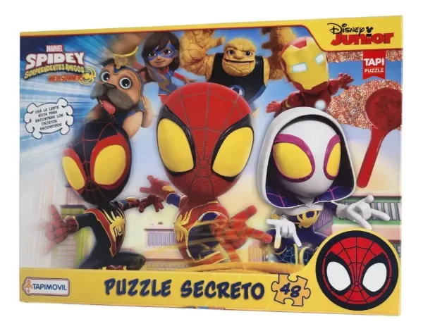 Este increíble puzzle de Spidey te permitirá armar una mágica escena e incluye una lupa especial para revelar sorpresas ocultas en la imagen.