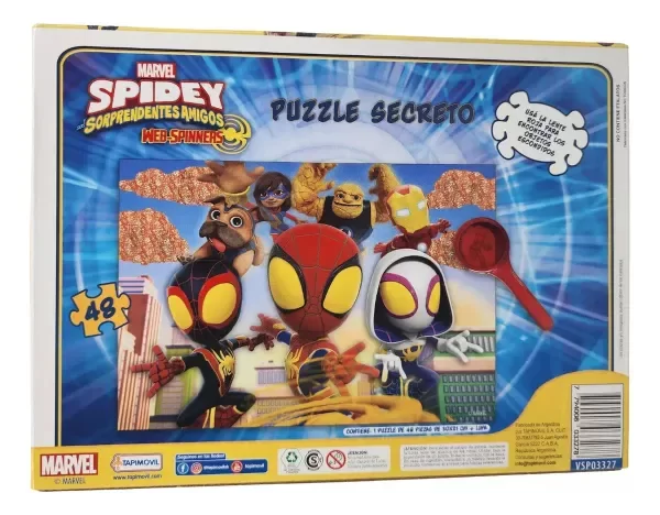 Cada pieza está diseñada para facilitar el armado y ofrecer una experiencia divertida y desafiante para los pequeños fanáticos del mundo de Spidey y sus amigos. Ideal para niños a partir de 3 años, este puzzle de 48 piezas desarrolla habilidades como la concentración y la coordinación mientras se sumergen en la aventura de Spidey.