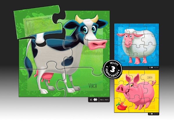 Contenido: 3 rompecabezas (6 · 9 · 12 piezas)