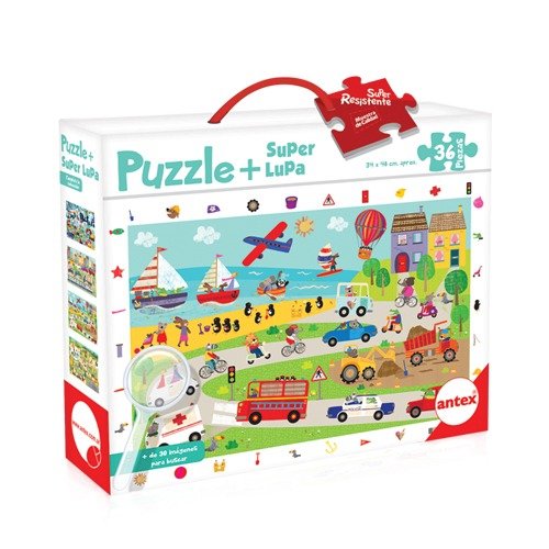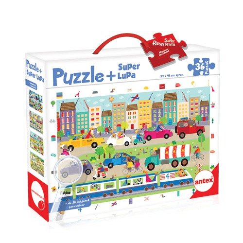 Rompecabezas con cartón super resistente. Incluye lupa para realizar el juego de búsqueda. Varios escenarios (ciudad, zoológico, transportes,monstruos)