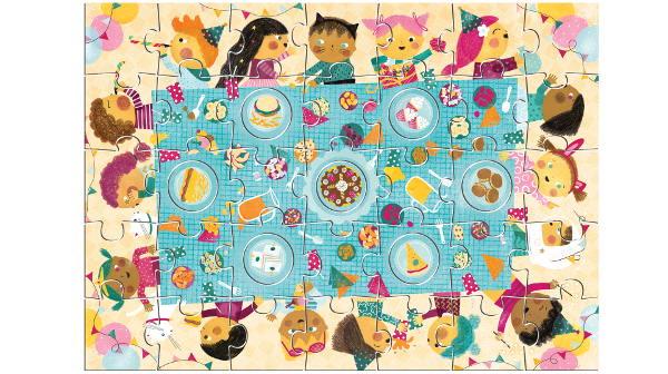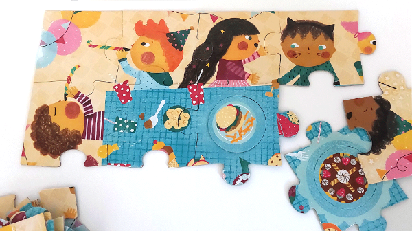 Este es un Rompecabezas de 35 piezas + 7 piezas redondas, para armar una Super Mesa de Cumple de 50x70cm.