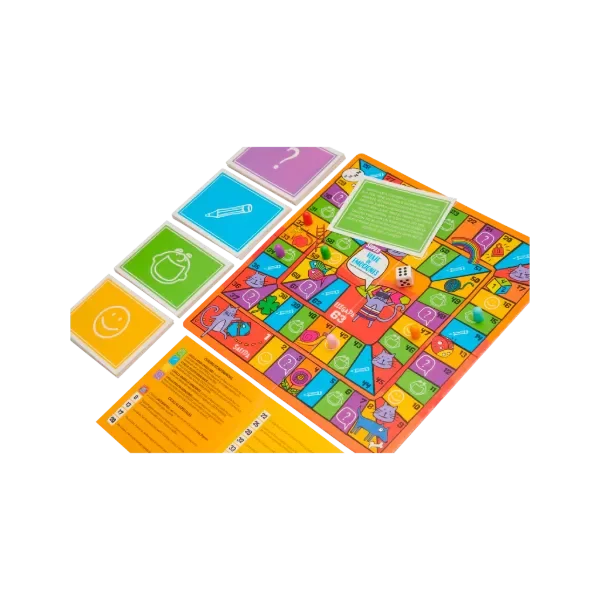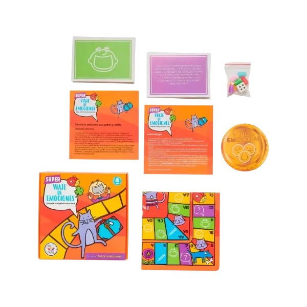 • Contiene un tablero, donde el recorrido es un viaje que se hace con los participantes y el Gato Bigotes como acompañante. Al caer en distintos casilleros los jugadores levantan tarjetas que los invita a expresar sus emociones de diferentes maneras.