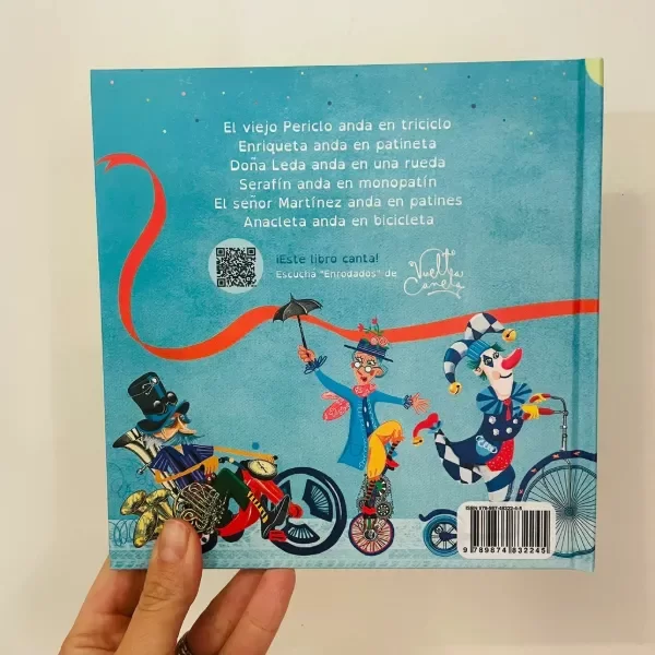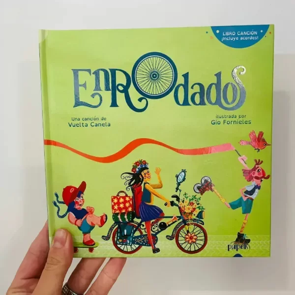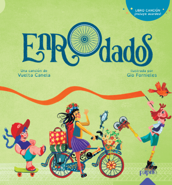 “Enrodados” es el tercer libro canción de Vuelta Canela en la Colección Serenata de Papel. Este libro, lleno de rimas muy divertidas, nos presenta a Anacleta, Enriqueta, Serafín, El Sr. Martínez, El viejo Periclo y Doña Leda, cinco simpáticos personajes que van andando por la ciudad en sus rodados preferidos: bicicleta, patines, monociclo, patineta y triciclo.