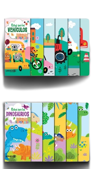 Libros de cartón con solapas para levantar en cada página, que invitan a los niños a interactuar con los escenarios y los personajes.