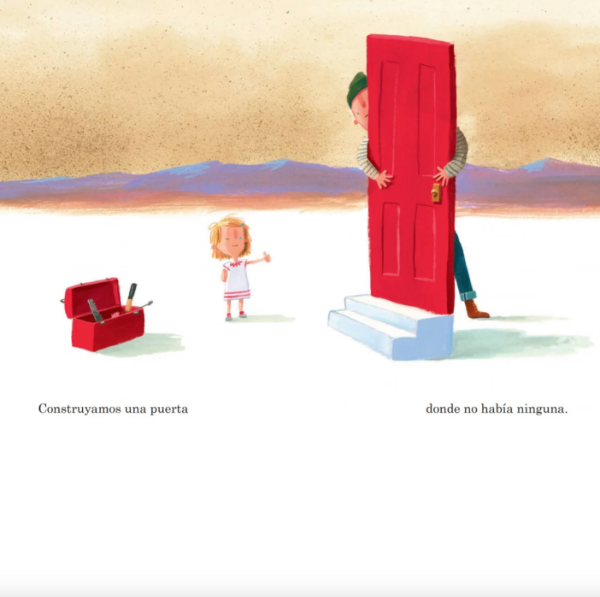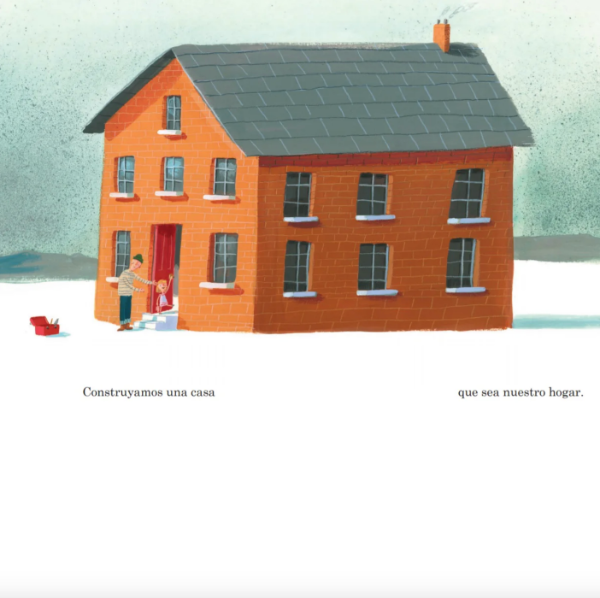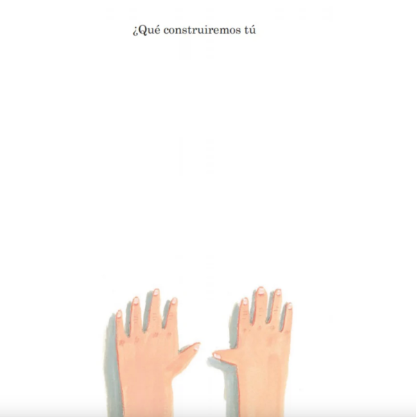 El libro comienza con la pregunta de un padre a su hija: “¿Qué construiremos?”, y Oliver Jeffers, con su singular estilo, da color y palabras a la entrañable respuesta que el padre va formulando para su pequeña: construiremos un hogar, un futuro, un reloj para guardar nuestro tiempo y una torre para ver el cielo.
